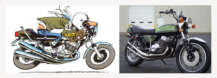 con su Kawasaki, allá por año 72, la Kawasaki 750 H2 mostraba lo mejor de la ingeniería japonesa al servicio del derrape.