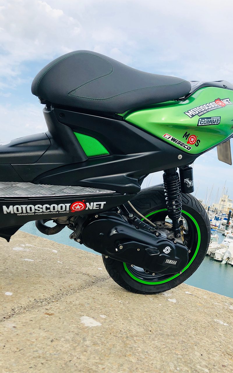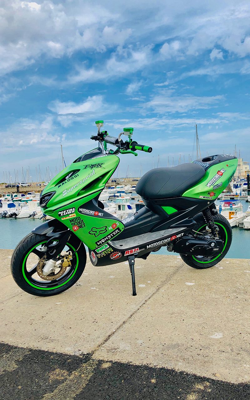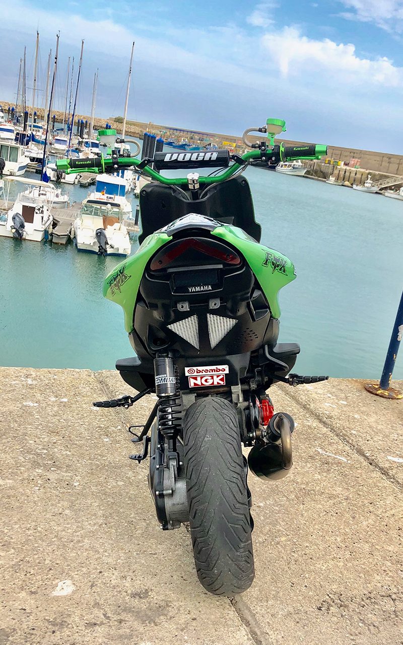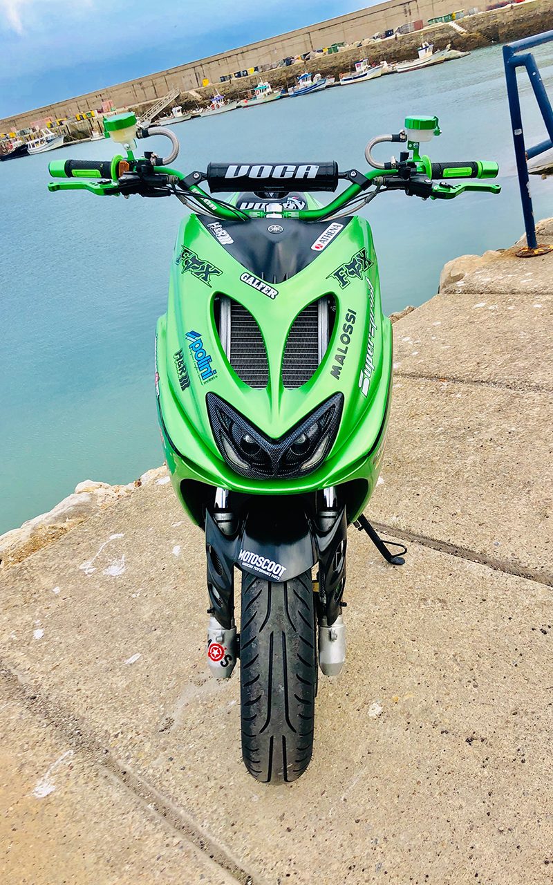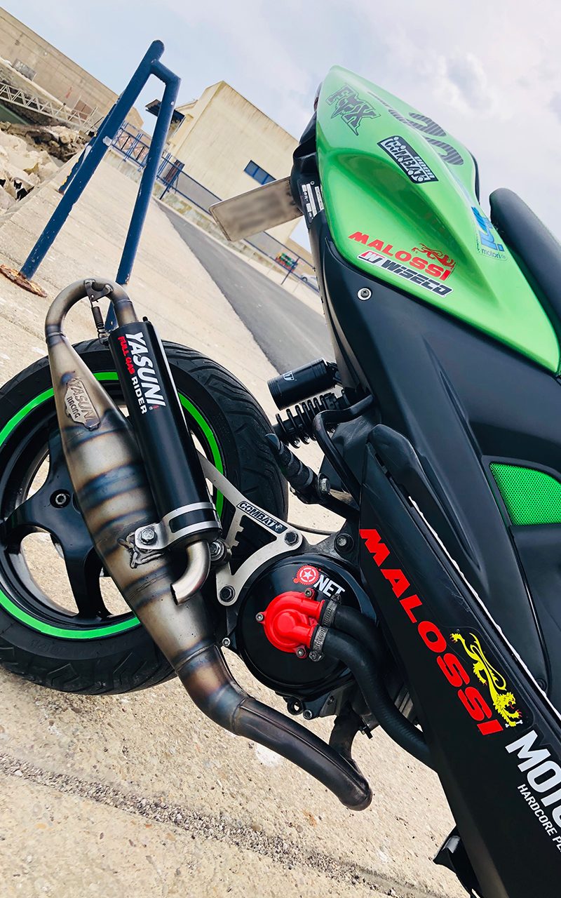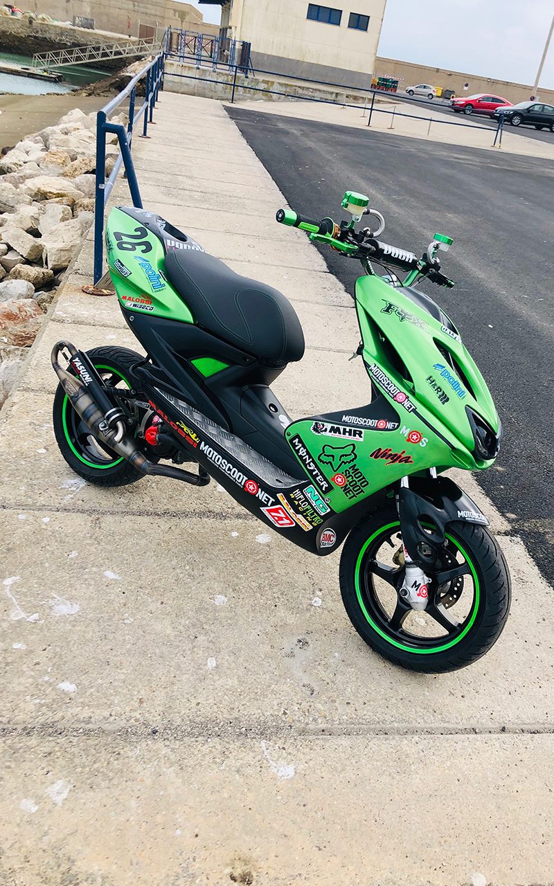 Este proyecto es de @ganfor12. La base de esta preparación es una Yamaha Aerox 2007 réplica Valentino Rossi, comprada de segunda mano en 2015.