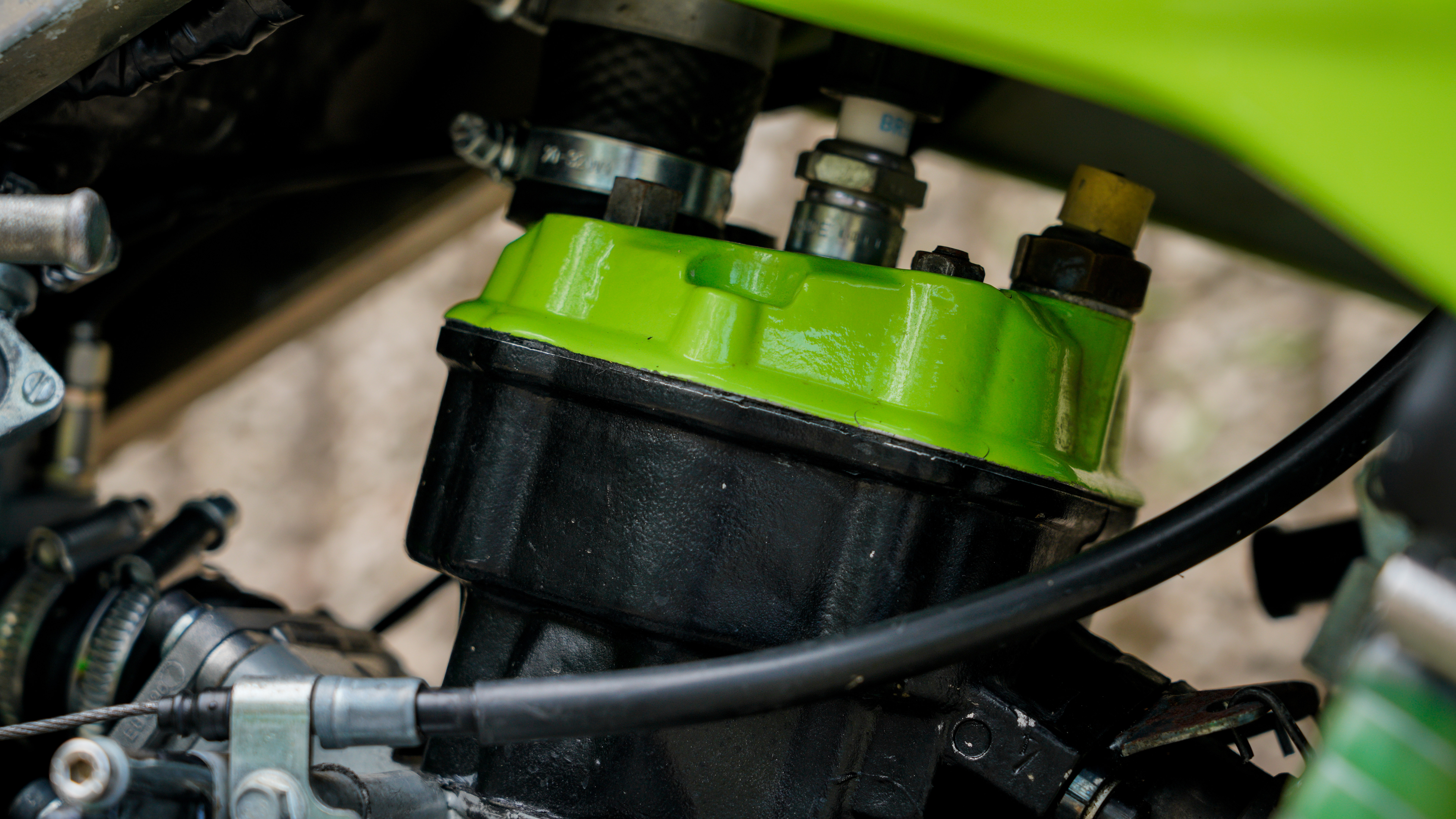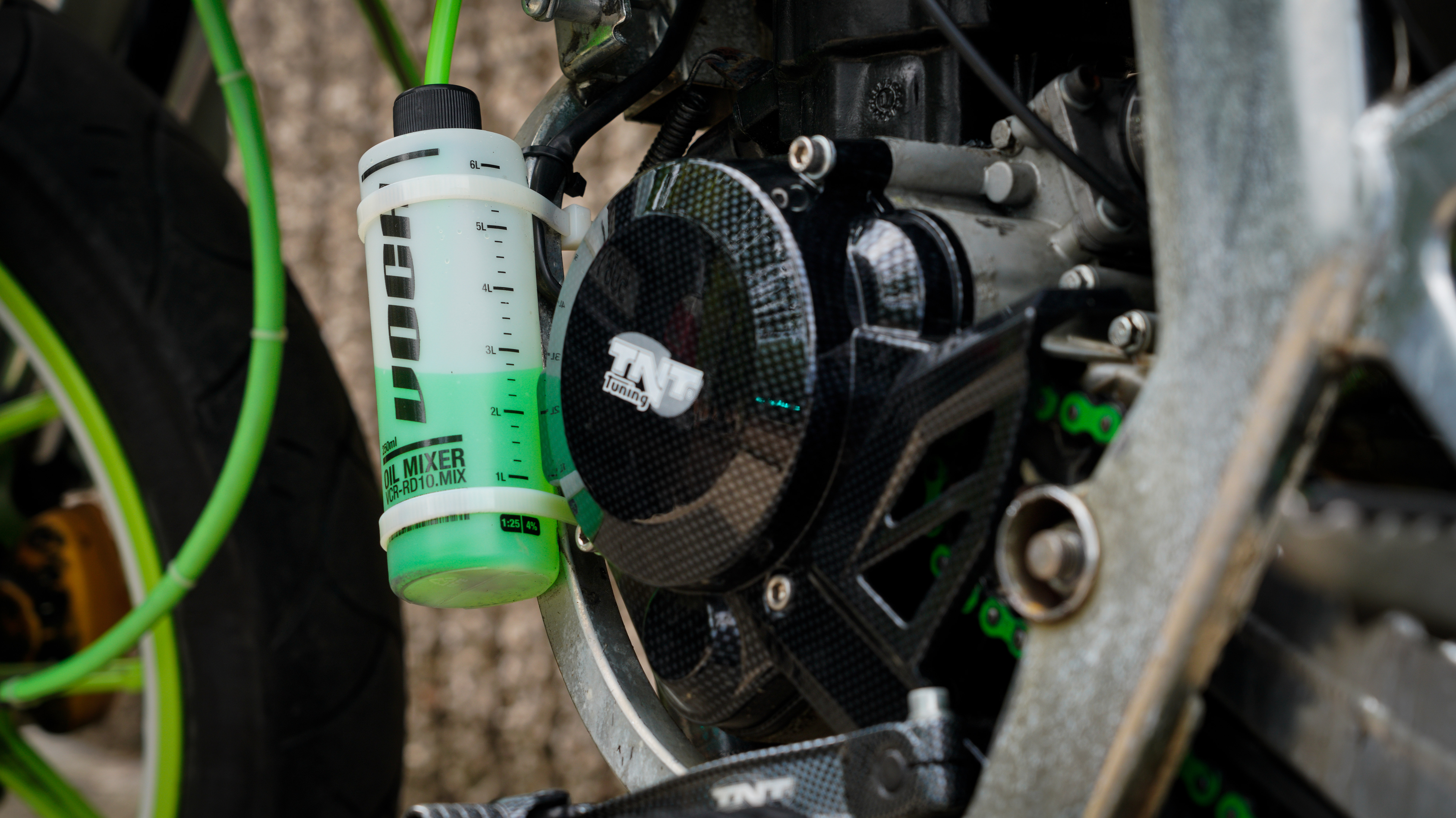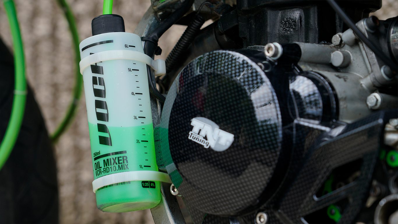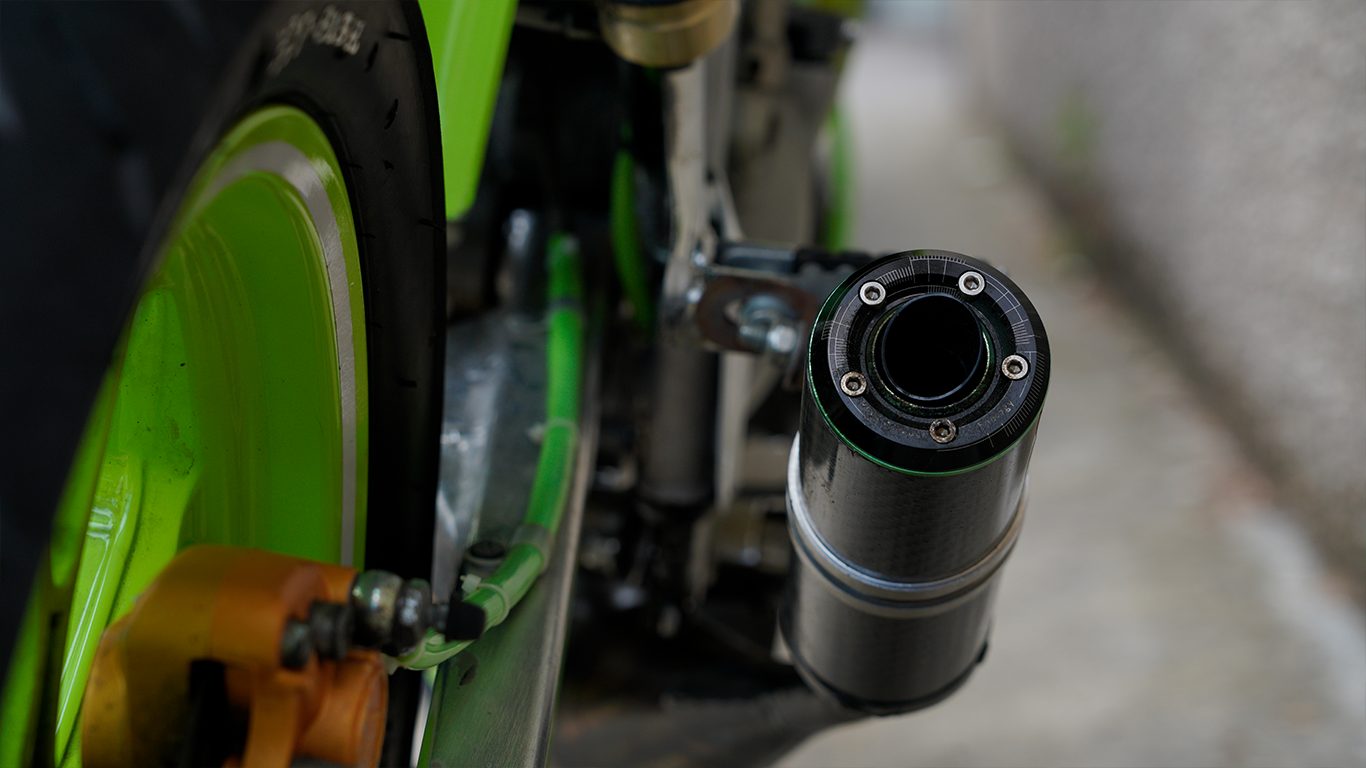 La estética ha sido cuidada, siguiendo una misma línea y color en varios acabados y en la funda de freno que ha sido hecha con el tubo de gasolina ALLPRO.