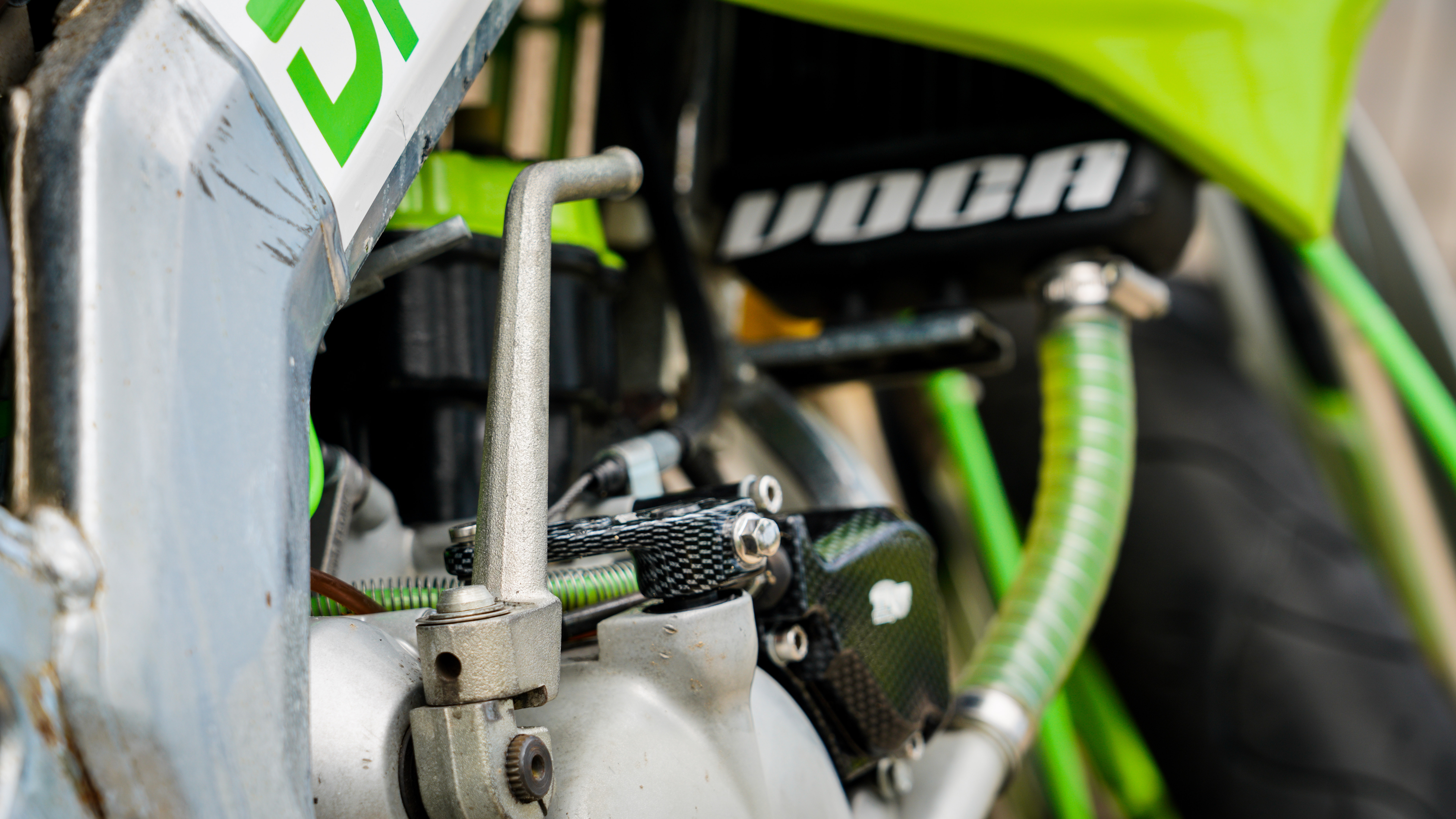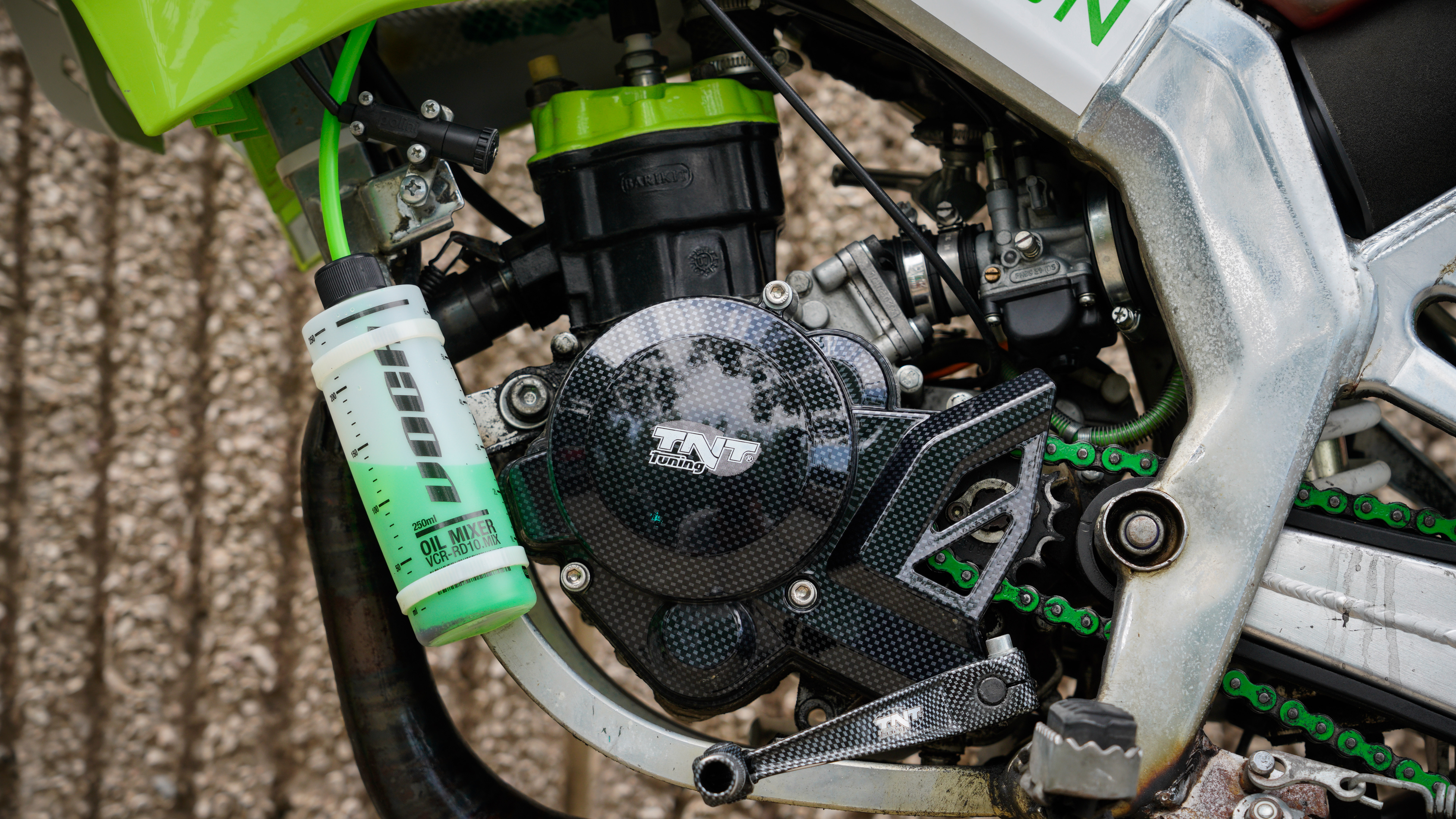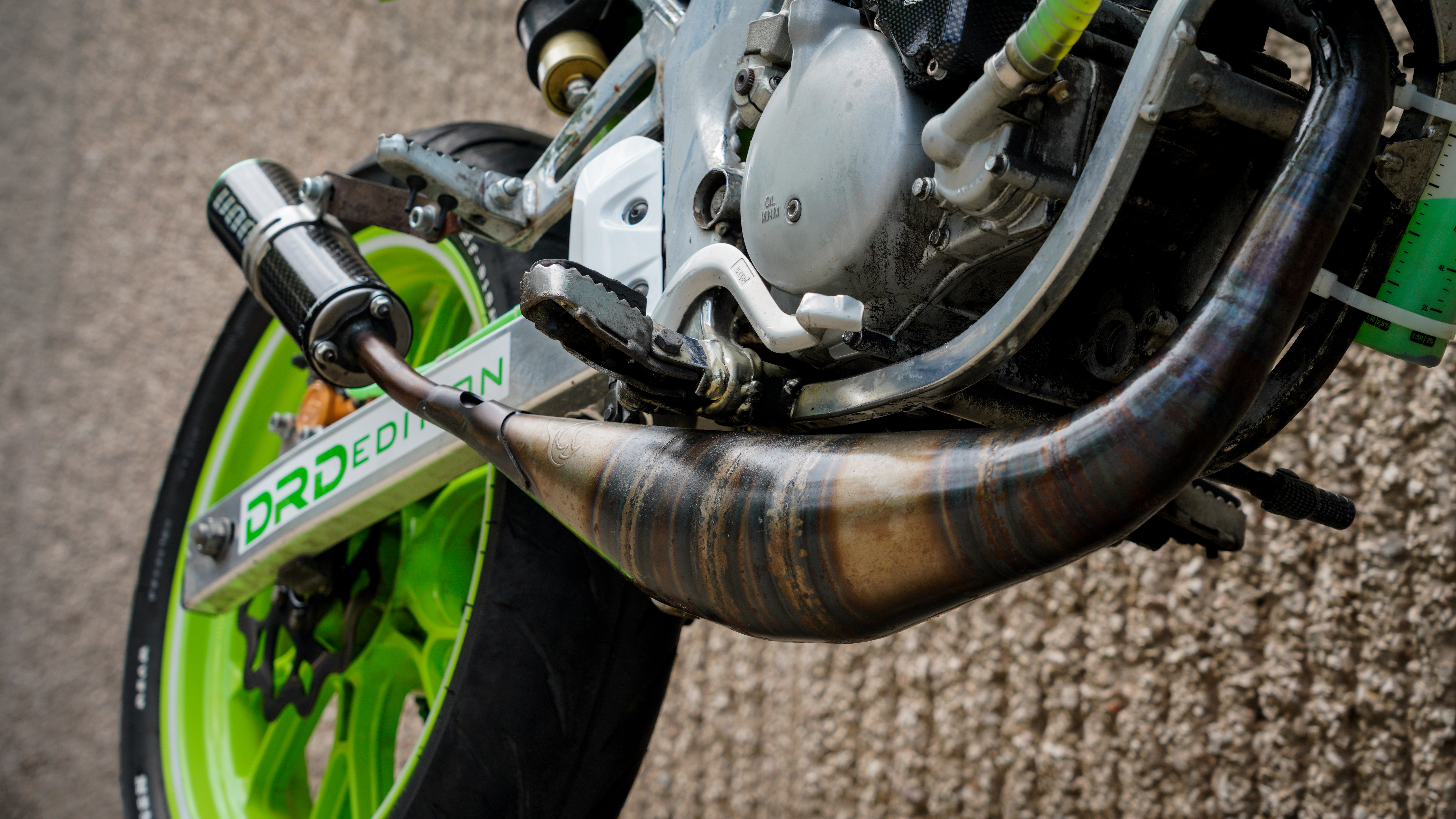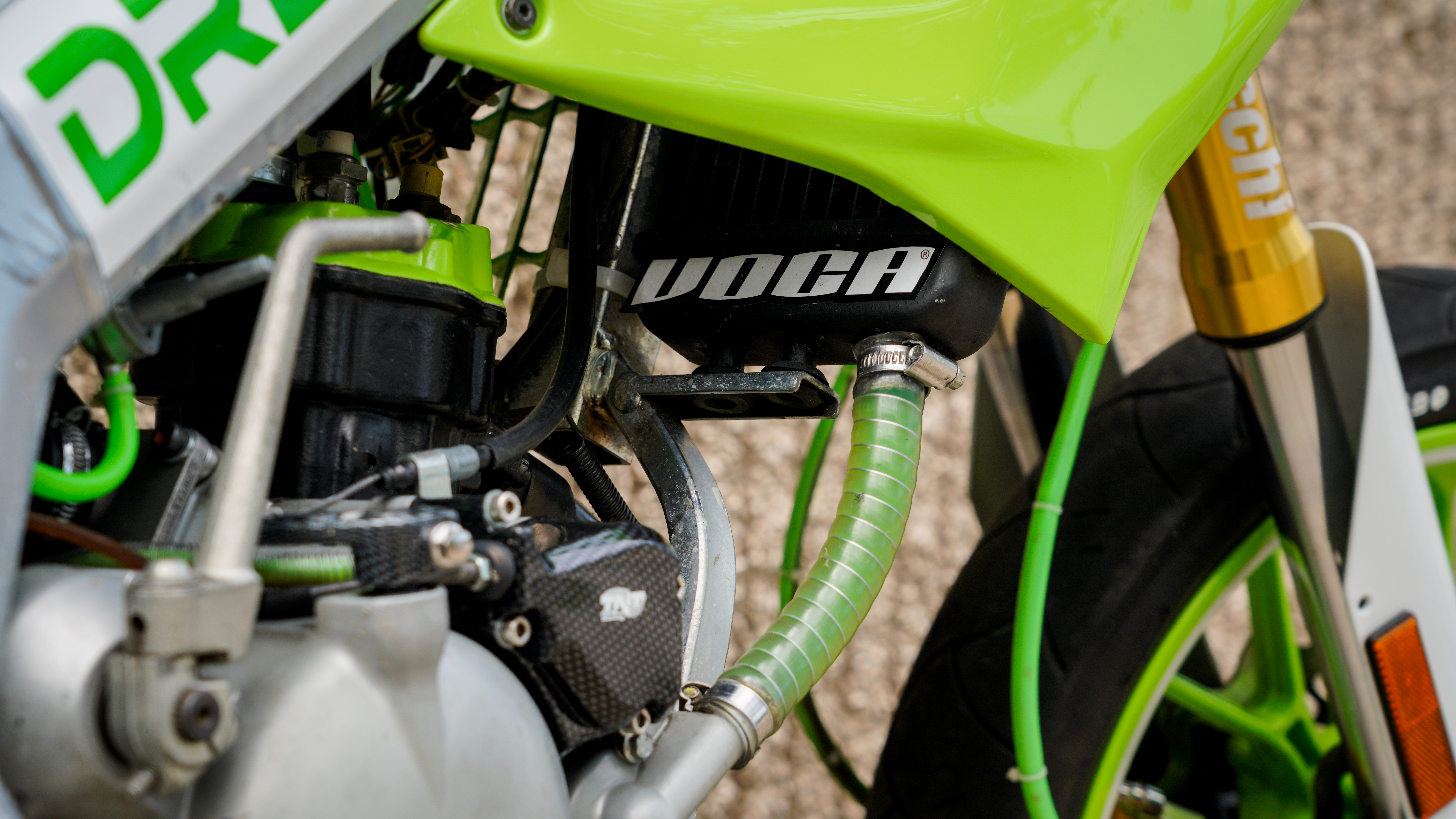 La estética ha sido cuidada, siguiendo una misma línea y color en varios acabados y en la funda de freno que ha sido hecha con el tubo de gasolina ALLPRO.
