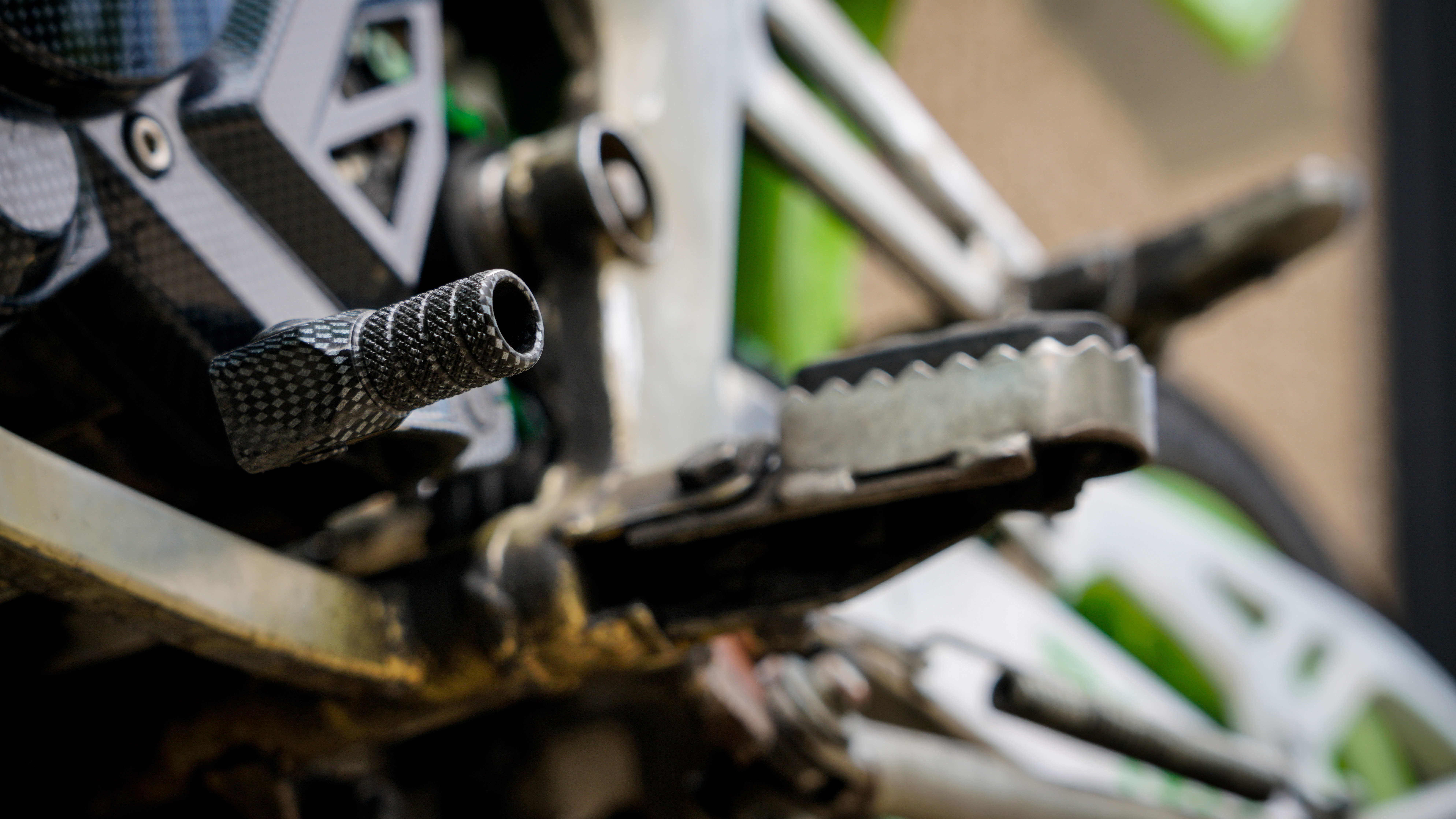 - Pedales acabados con hidroimpresión de carbono